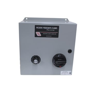 The FC-41-575-W Plus Feeder Cube® is a Single controller, housed in a NEMA-4 wash down enclosure. Input voltage is 575 VAC, 50/60 Hz. Fused for 18 amps.
