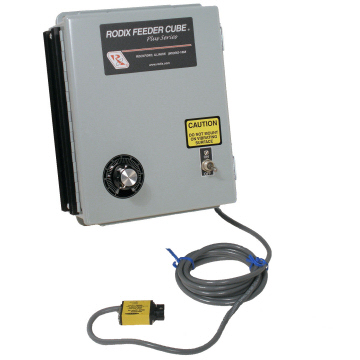 The FC-91H-4 Plus Feeder Cube® is a Single heavy-duty controller with parts sensing housed in a NEMA-12 oil resistant enclosure with a 111-500 fiber optic sensor installed. Input voltage is 120 VAC, 50/60 Hz. Fused for 30 amps.