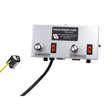 The CFR-92 Plus Feeder Cube® is a Dual controller with the Constant Feed Rate feature, housed in a NEMA-1 General Purpose enclosure with parts sensing. Vibration sensor is included and ships installed on the control. Input voltage is 120 VAC, 50/60 Hz. Unit A is fused for 10 amps; Unit B is fused for 5 amps.
