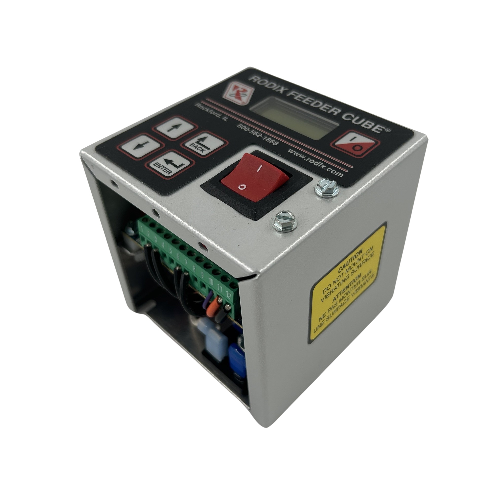 The FC-205-240-DC Feeder Cube® is a Single 200 Series digital control designed for mounting inside a larger cabinet on the subpanel. The sides are open for easy access to the terminal strips for applying power and sensors. Input voltage is 240 VAC and the unit is fused for 4 amps. Output type is DC for Brushed DC