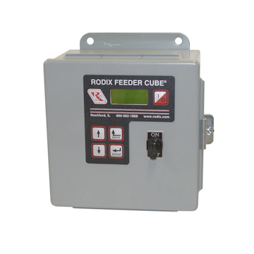 The FC-208 Feeder Cube® is a Single digital control based on the 90 Plus Series. It is housed in a NEMA-12 oil resistant enclosure. Input voltage is 240 VAC, 50/60 Hz. Output is fused for 8 amps.