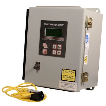 The VF-9-OR AUTO TUNE® Feeder Cube® is a Single variable frequency controller that comes with the vibration sensor installed. The enclosure is rated for an IP54 environment and UL rated for a Type 5 environment. UL listed (File E183233). Input voltage is 85-264 VAC, 50/60 Hz and fused for 5 amps. Output voltage is 0-120/240 VAC. Output frequency is 5-180 Hz. Rated output current is 9 Amps at 120 VAC or 4.5 Amps at 240 VAC.