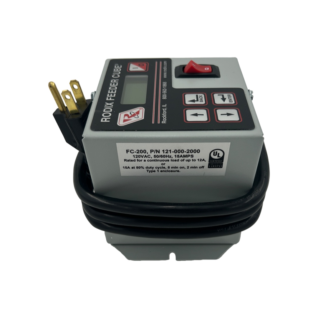The FC-200 Feeder Cube® is a single AC output, digital UI, UL/cUL certified, fixed-frequency vibratory feeder controller.